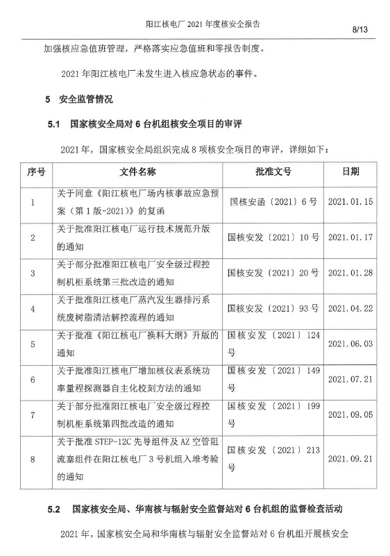 陽(yáng)江核電廠2021年度核安全報(bào)告